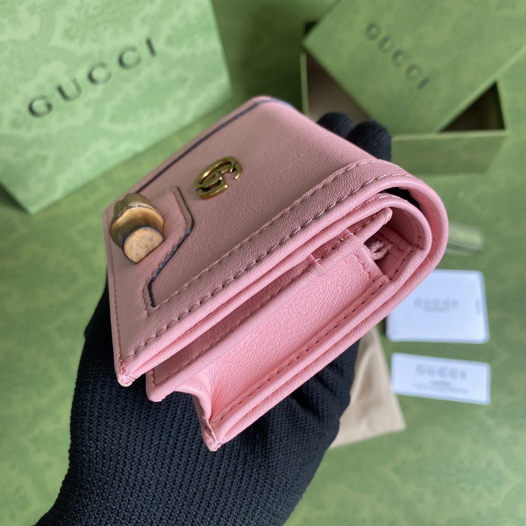 Placa del logo en tono dorado, detalle de bambú, cierre frontal con solapa, correa de cadena removible para el hombro, bolsillos internos con cremallera y compartimentos internos para tarjetas. Material: cuero.