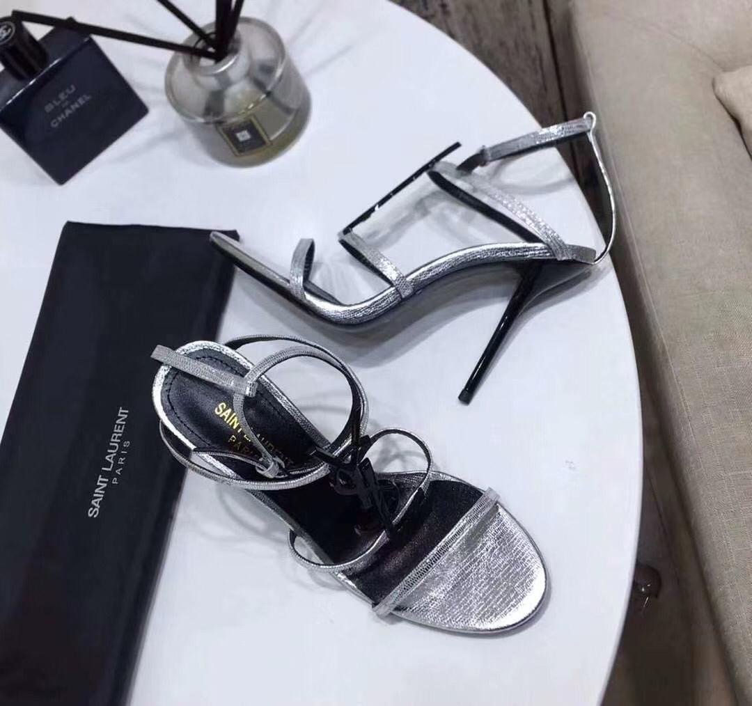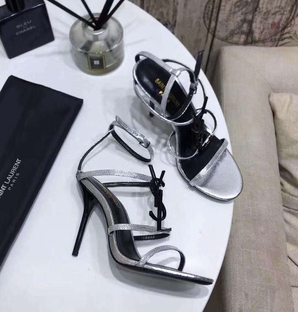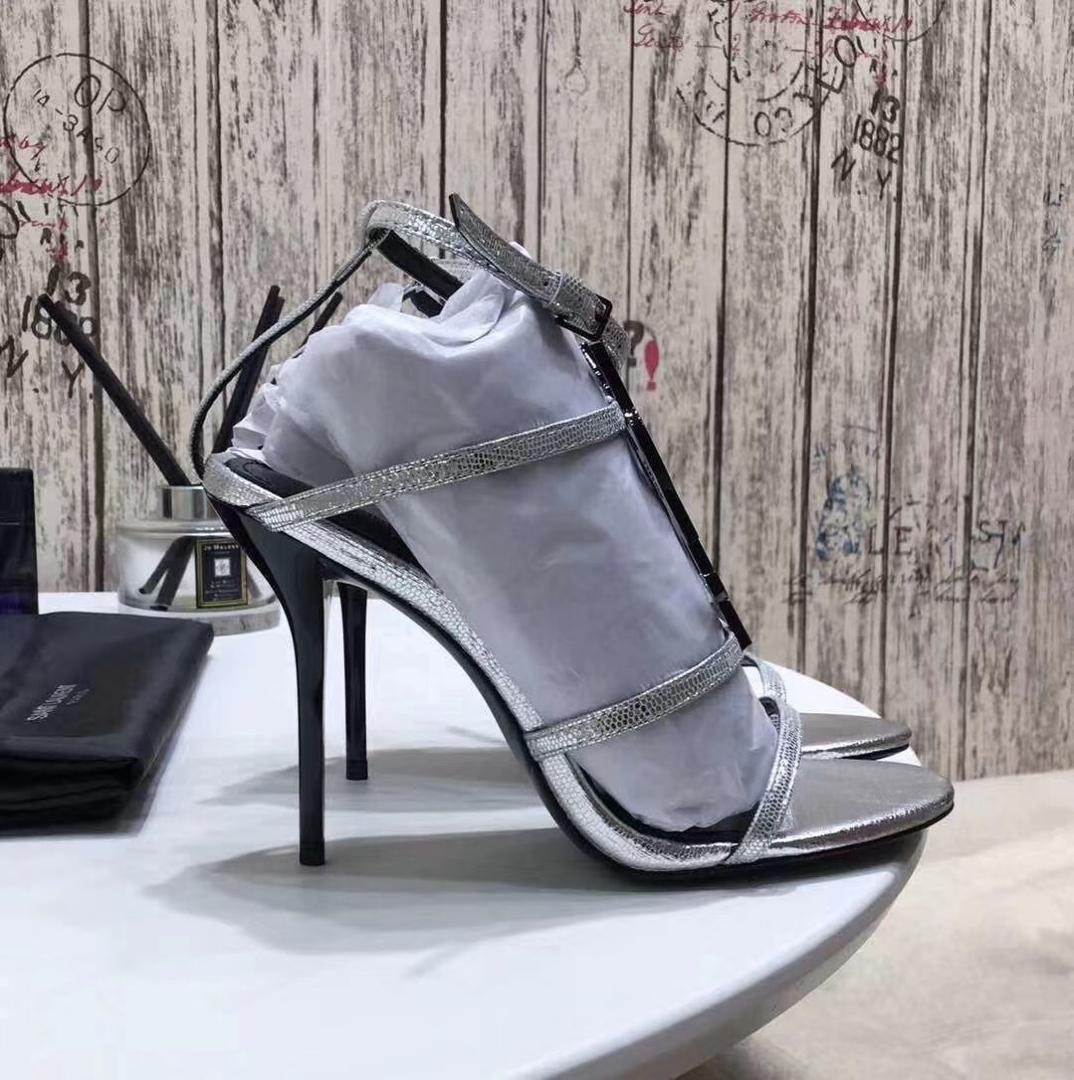 cierre con correa en el tobillo con hebilla lateral y tacón stiletto alto.
