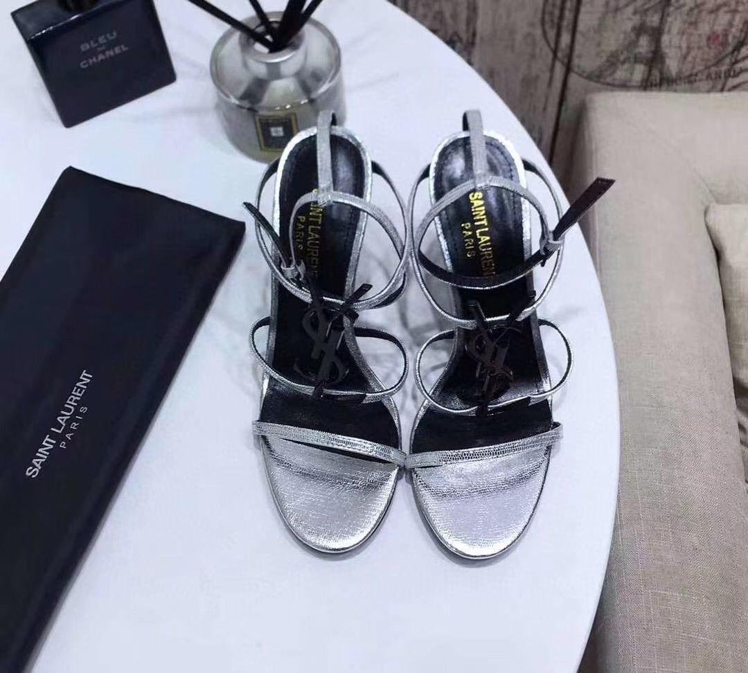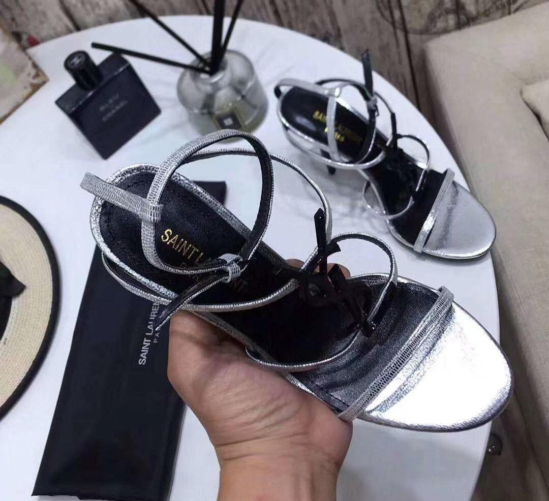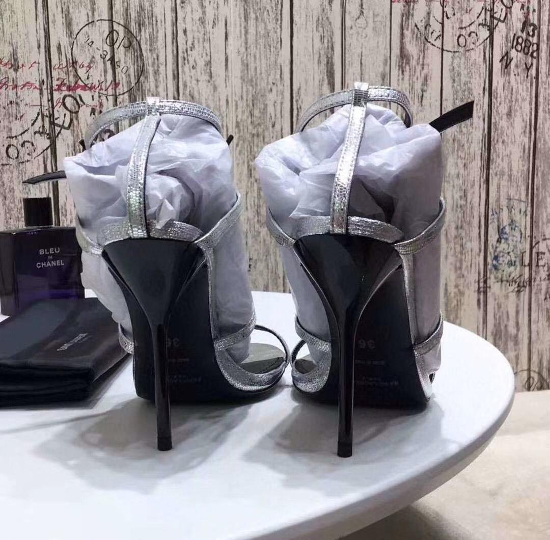 cierre con correa en el tobillo con hebilla lateral y tacón stiletto alto.