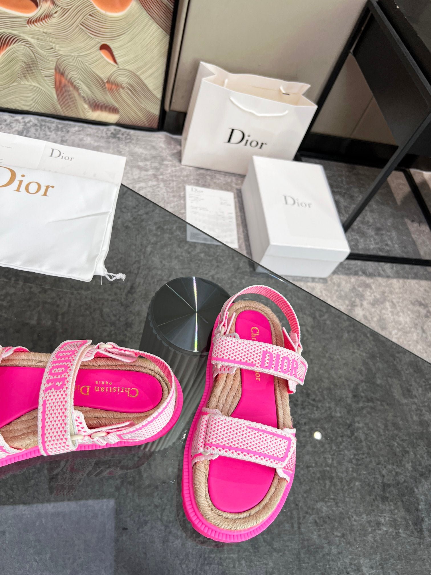 - Cuña de esparto y EVA con estrella, símbolo de la suerte de Christian Dior