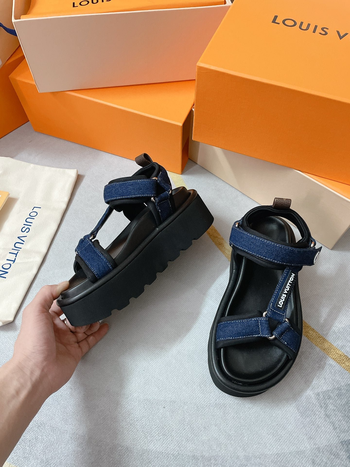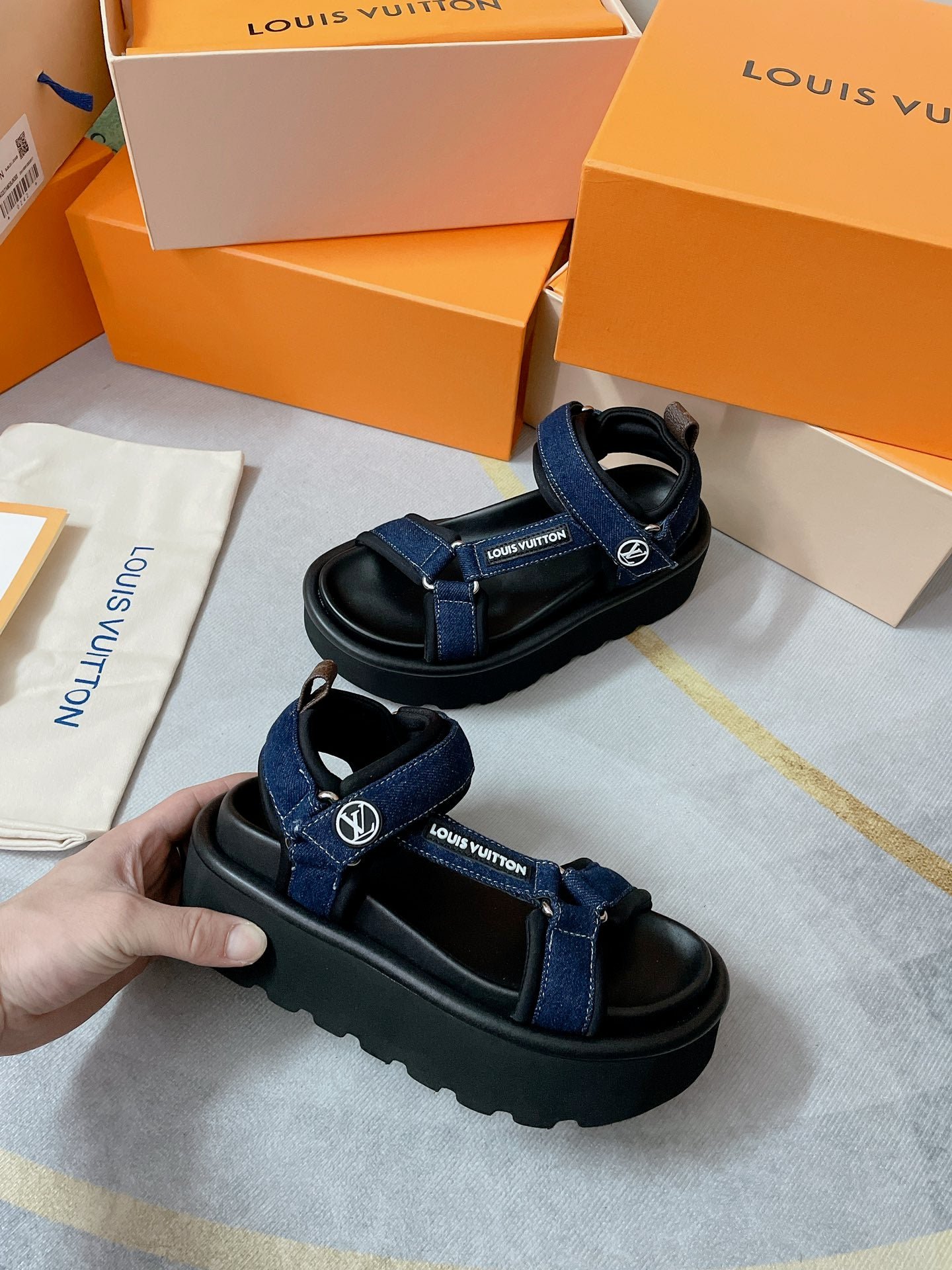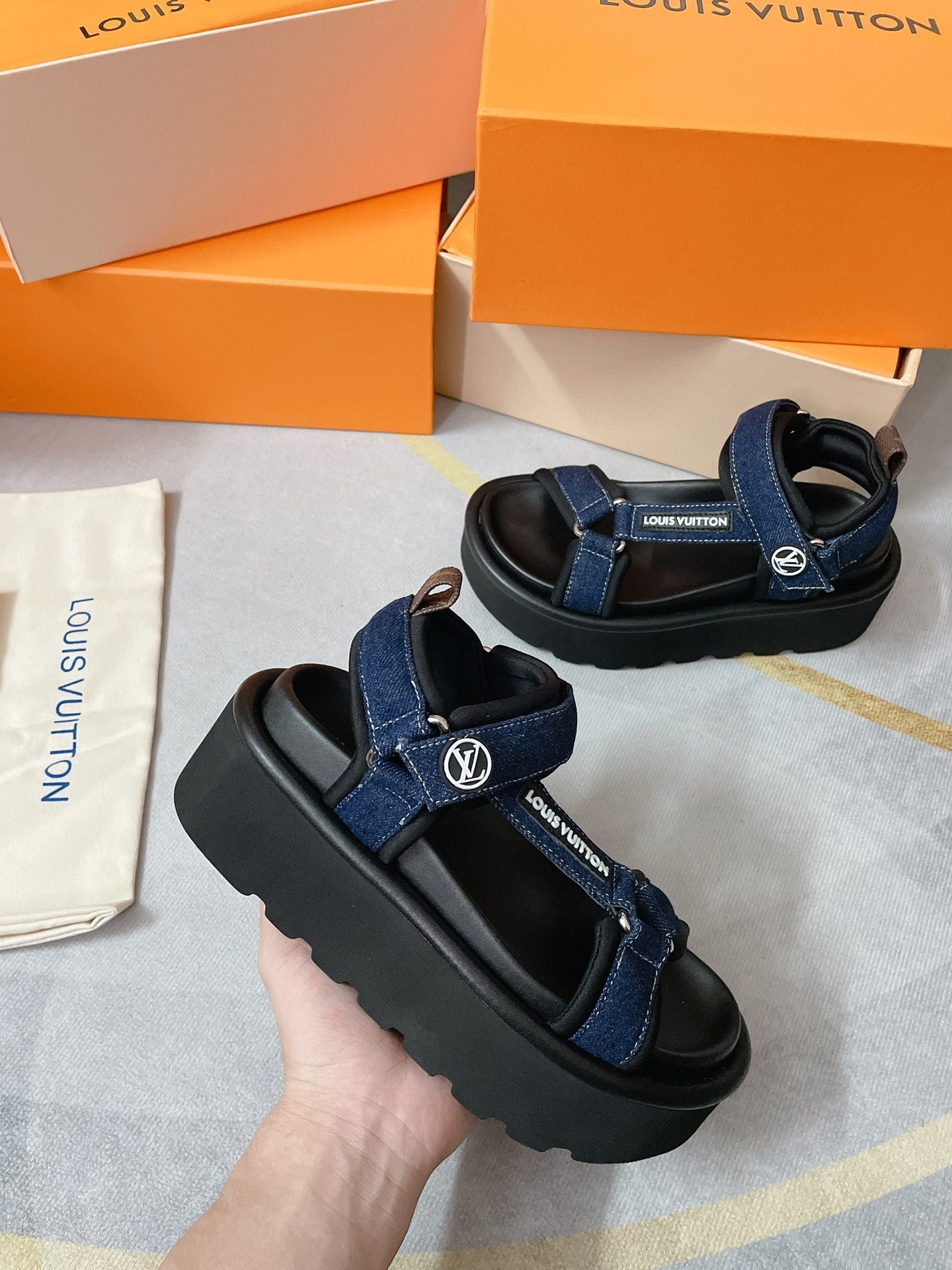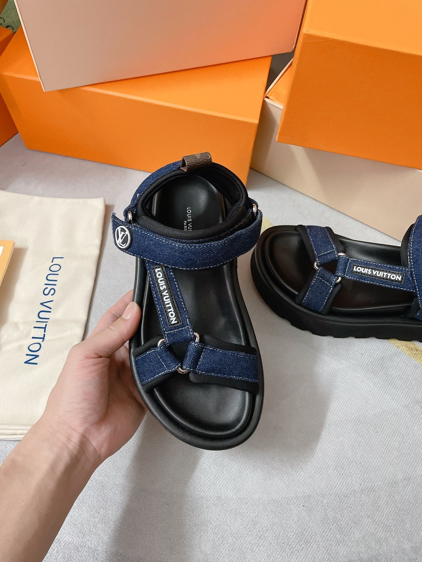 - Distintivo Louis Vuitton en la correa