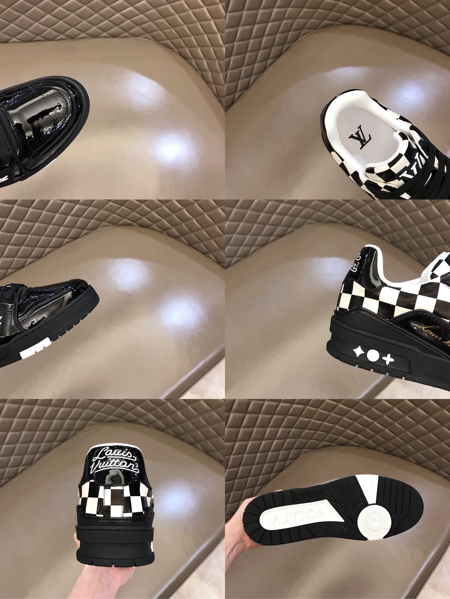 • Logotipo Vuitton en la lengüeta y la parte trasera